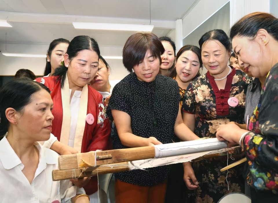 开营仪式上,苏州刺绣研究所黄艳萍所长做了欢迎致辞,对来自中国民族民间工艺美术家协会、农业农村部帮扶司、苏州文旅集团、苏州自然资源和规划局高新区分局、浙商银行苏州分行、江苏省花鸟画研究会的领导和嘉宾、来自全国各地的乡村工匠表示热烈的欢迎。她表示,苏州刺绣研究所一直致力于技艺传承与人才培养,希望乡村工匠——苏绣团扇技艺训练营再一次成为这份坚守和努力的印证,让苏绣的火种代代相传。
