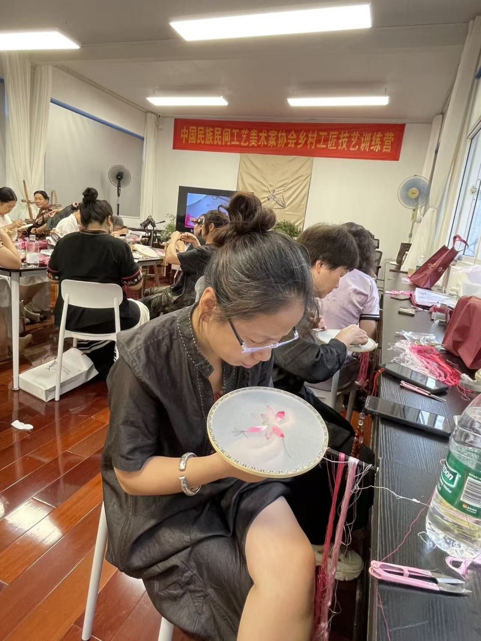 为了推动苏绣团扇技艺传承与创新发展,落实由农业农村部牵头的“关于推进乡村工匠培育工作的指导意见”要求,构建多元乡村工匠培育机制的重要举措,2025年9月15日,中国民族民间工艺美术家协会主办的乡村工匠——苏绣团扇技艺训练营在苏州正式开营。来自全国各地乡村工匠齐聚苏州刺绣研究所,共同开启为期两天的深度研学之旅。