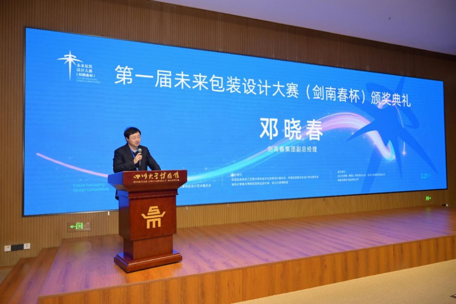 2026年3月21日,由四川省美术家协会设计艺术委员会主办,中国民族民间工艺美术家协会文化创意设计专业委员会、清华大学美术学院视觉传达设计系、中国包装联合会设计专业委员会、四川大学博物馆协办,四川剑南春(集团)有限责任公司、成都汉鼎艺术中心承办的第一届全国未来包装设计大赛(剑南春杯)颁奖典礼在四川大学博物馆学术报告厅隆重举行。